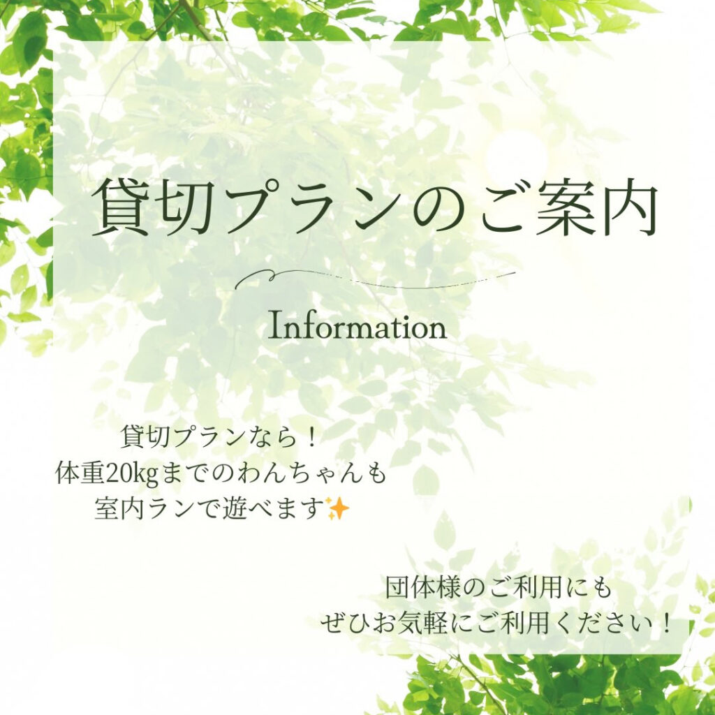 貸切プランは平日のみ承ります